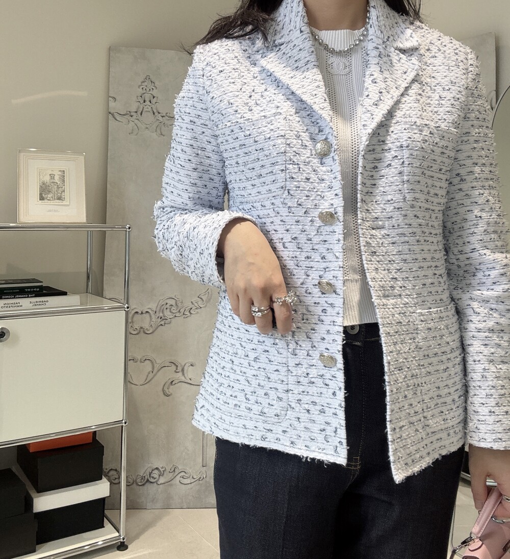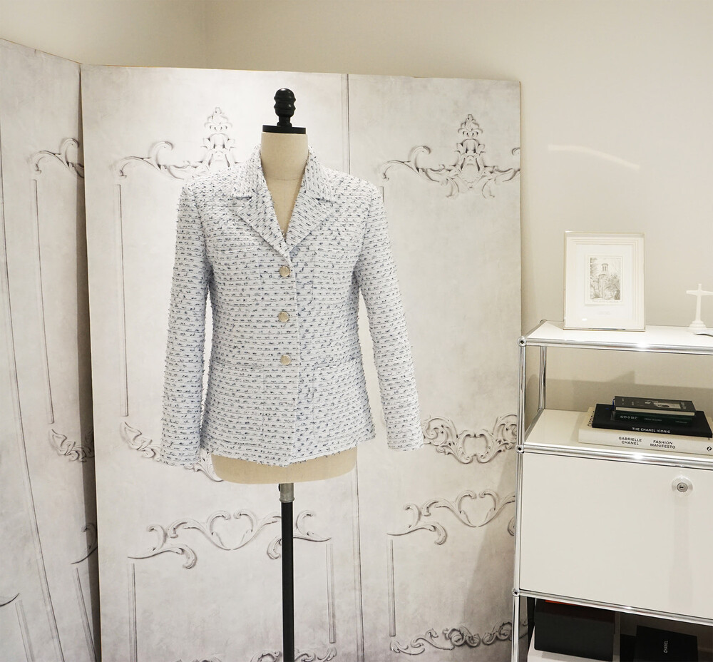가브리엘 샤넬의 빈티지 무드를 적용한 클래식한 라인의 자켓입니다.