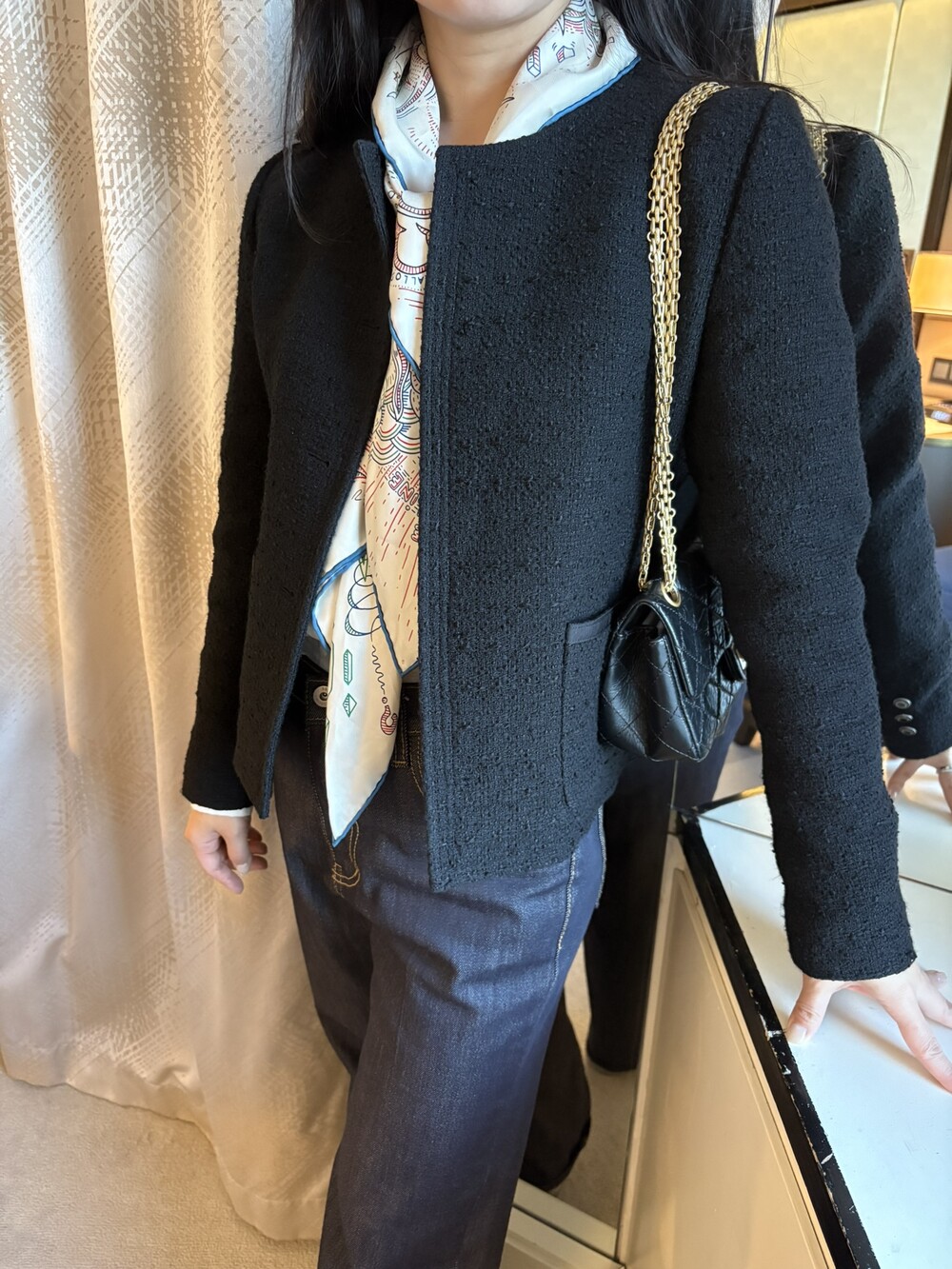 가브리엘 샤넬의 빈티지 무드를 적용한 클래식한 라인의 자켓입니다.