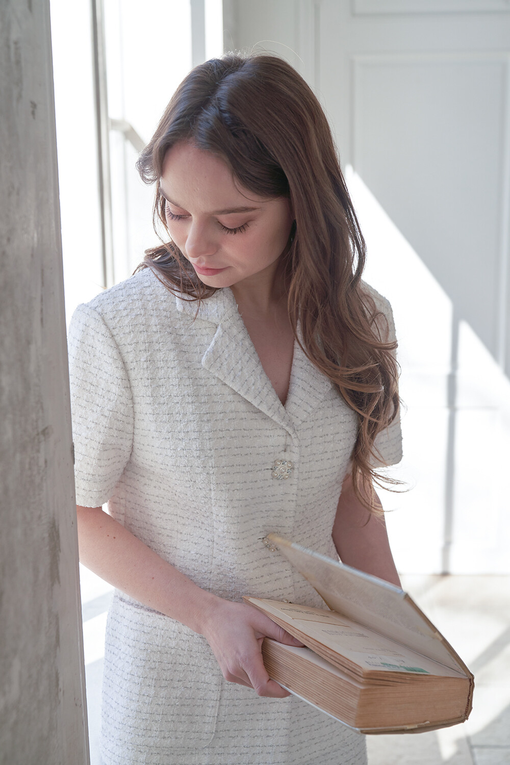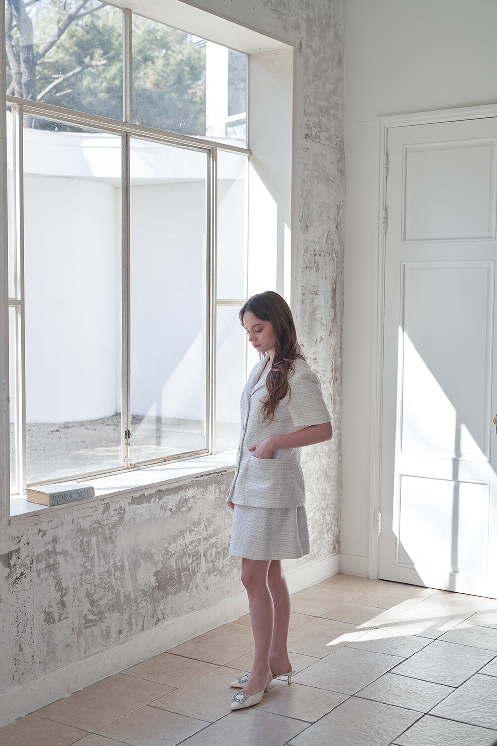 여름 시즌 쿨톤으로 매치하시기에 좋은 화이트 트위드 원단입니다.
