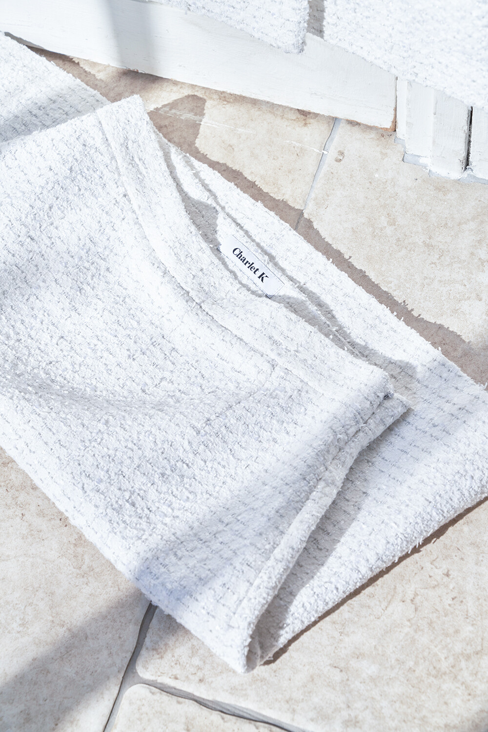 Charlet K 의 프리미엄 자체제작 '화이트 트위드 스커트' 상품입니다.