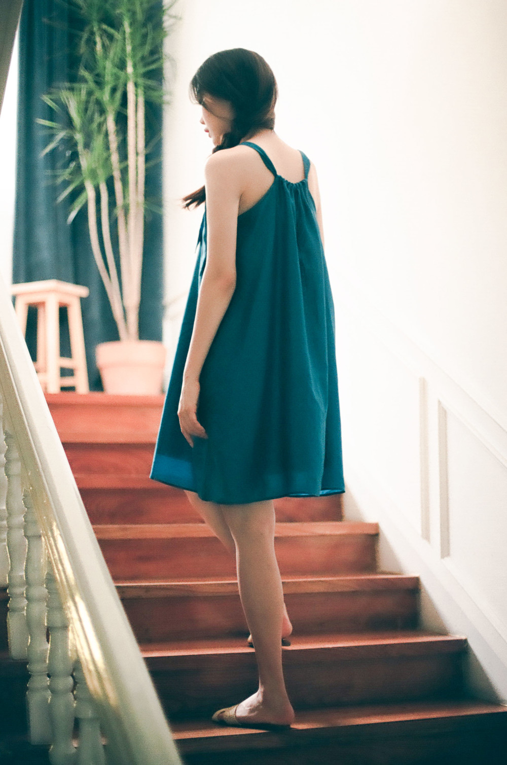- 시원한 터키 블루 색상의 오프숄더 드레스 입니다.